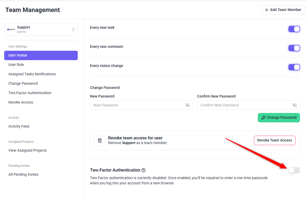Secure your Atarim account with Two-Factor Authentication for enhanced protection.