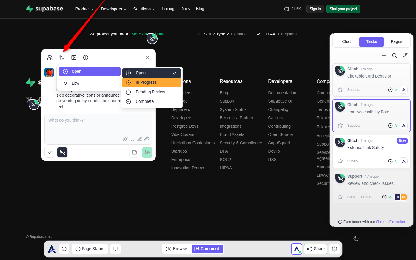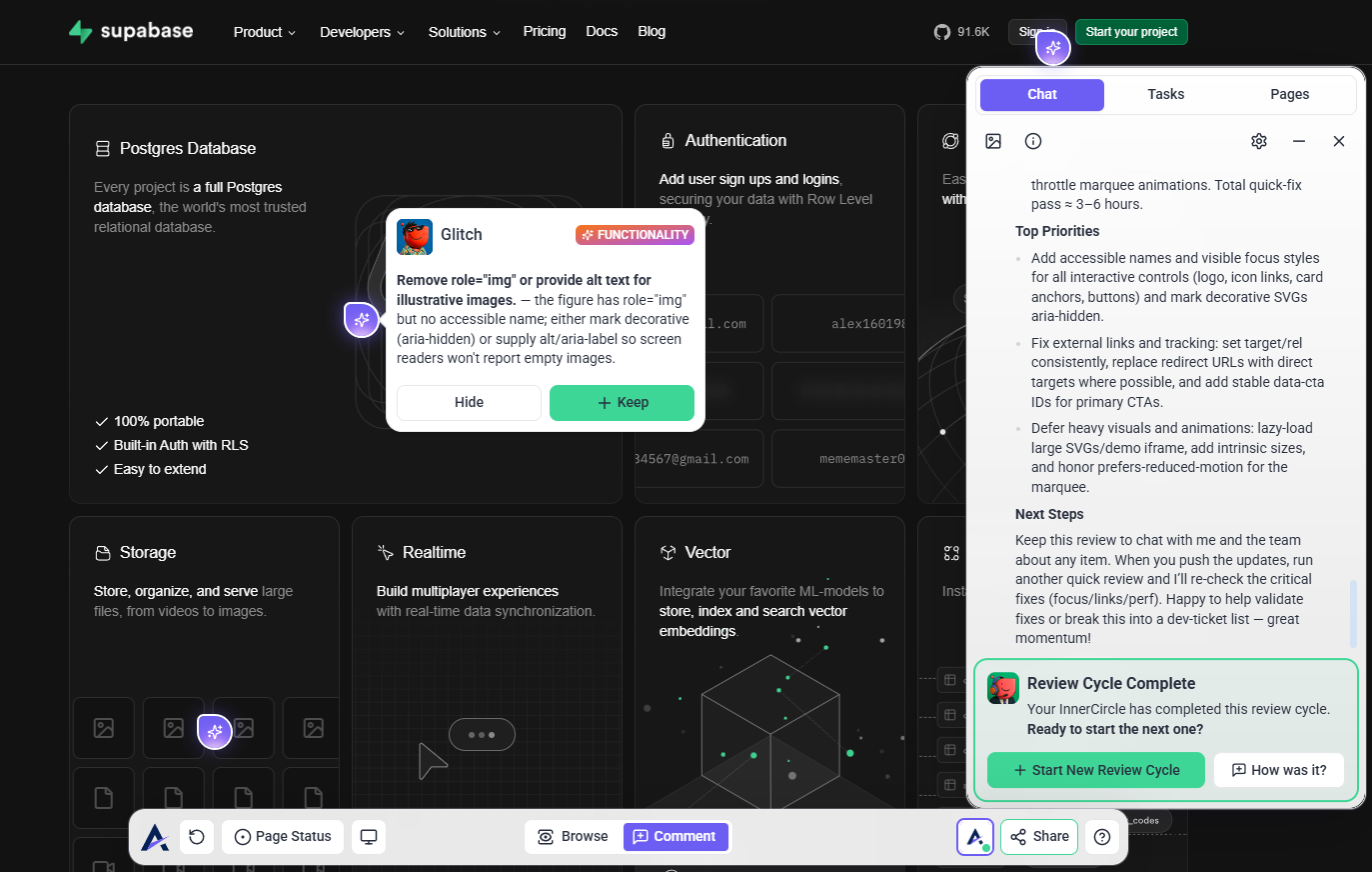 You no longer need to bounce between developer tools or bug tracking systems just to test a staging page. Glitch runs directly in your feedback flow, surfacing broken behavior in seconds. He acts like an automated QA pass, catching things that often slip through visual-only reviews.