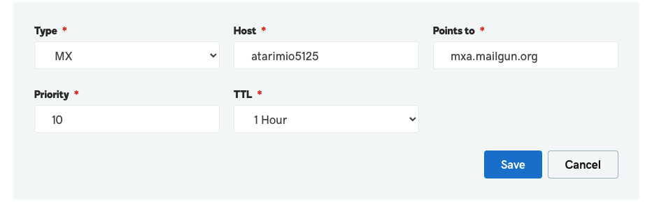 • TXT Value: v=spf1 include:mailgun.org ~all