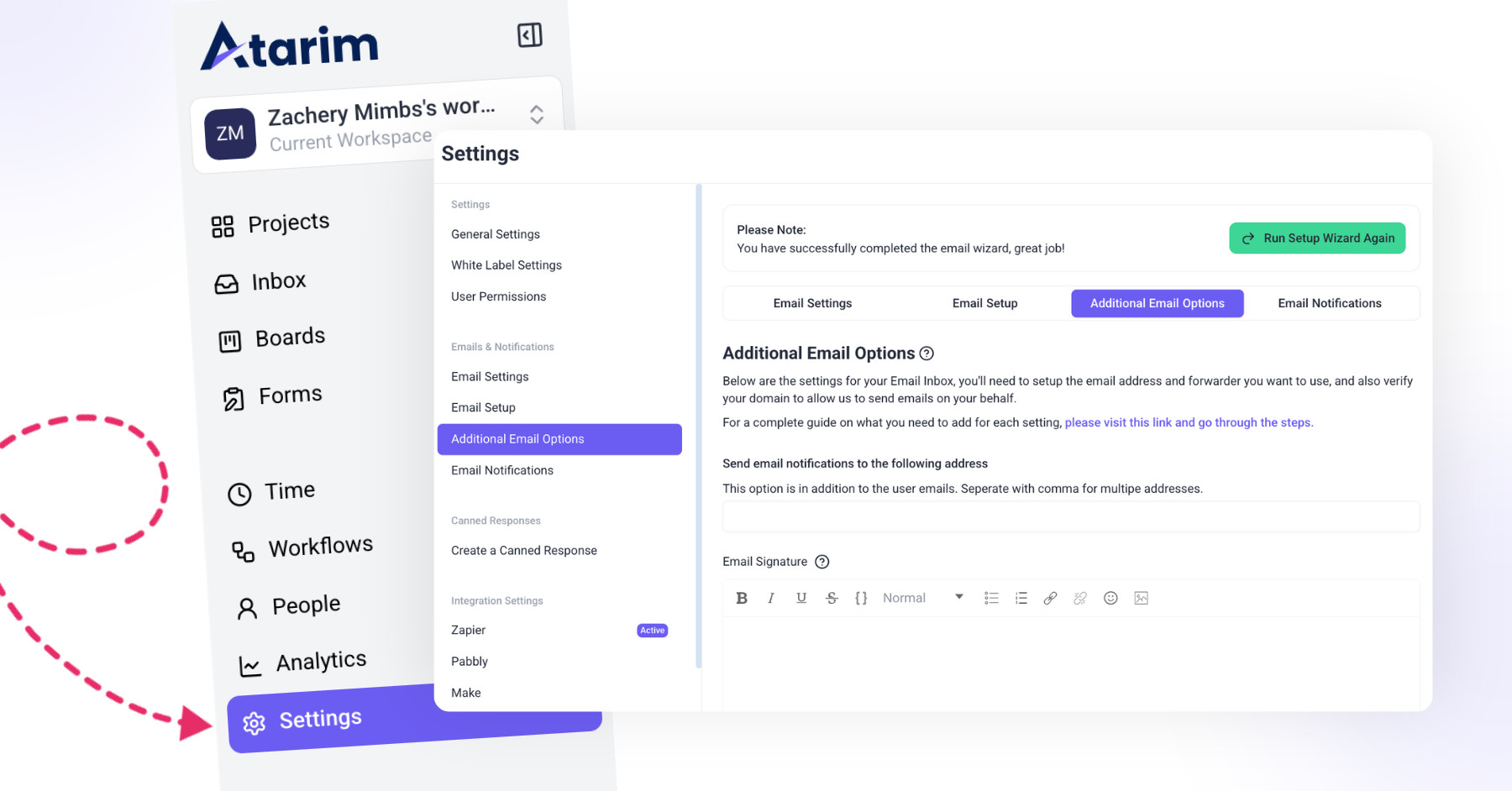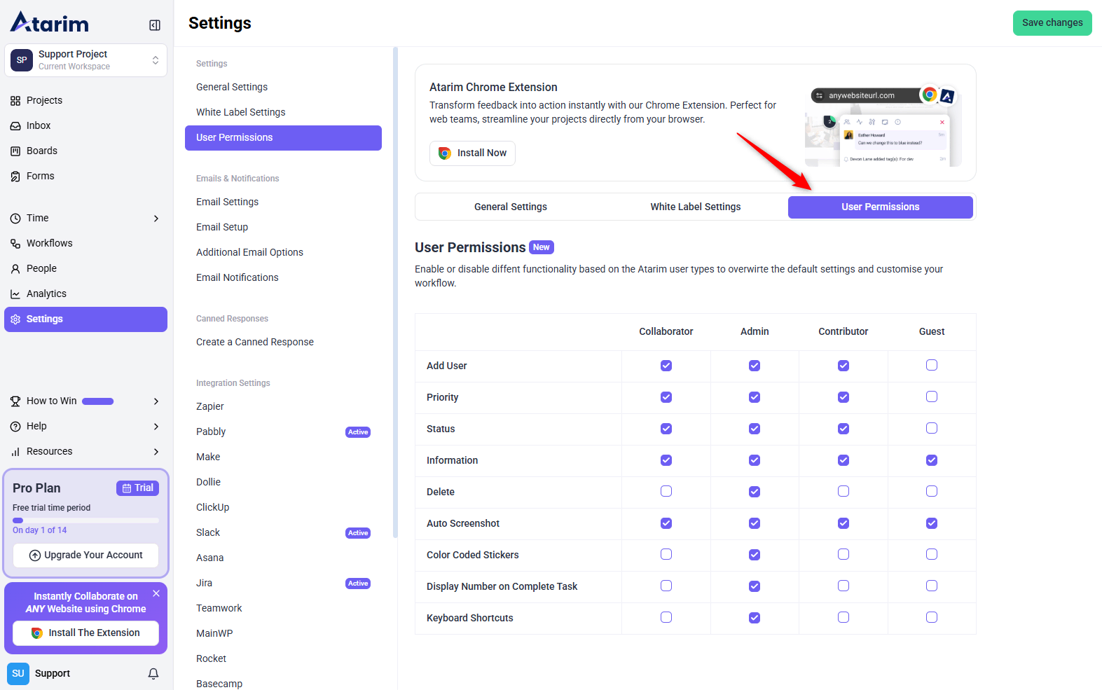 The Dashboard Settings in Atarim allow you to customize your workspace, control user permissions, manage email notifications, and integrate third-party tools. Whether you’re configuring global settings, setting up email alerts, or managing white-label options, this guide will walk you through everything you need to know.