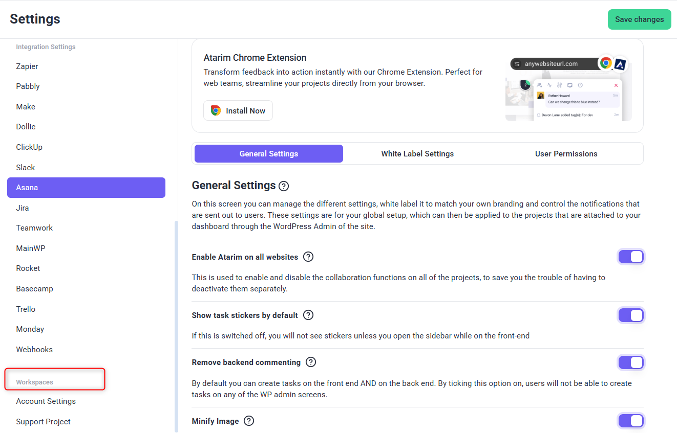 Connect Atarim with third-party tools like Asana, Slack, and Jira for enhanced workflow automation.