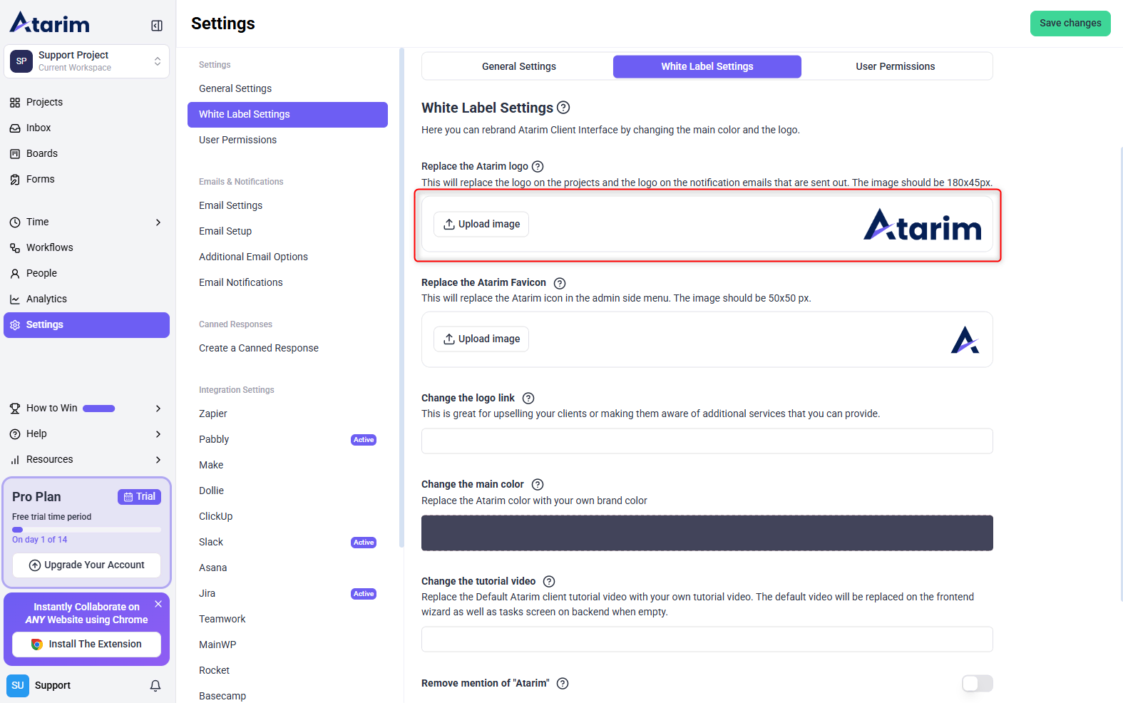 Replace Atarim’s logo with your own branding to ensure a professional look across the platform.