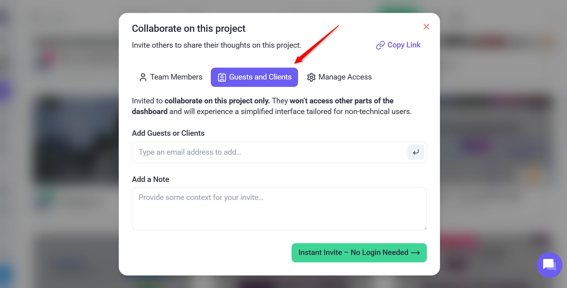 - Invite clients via email from the projects page to bypass their need to register. Straight into feedback.