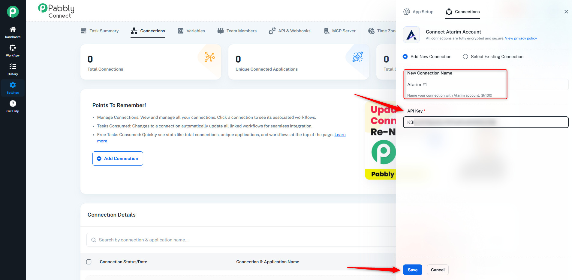 2. Add Atarim as a Connection in Pabbly