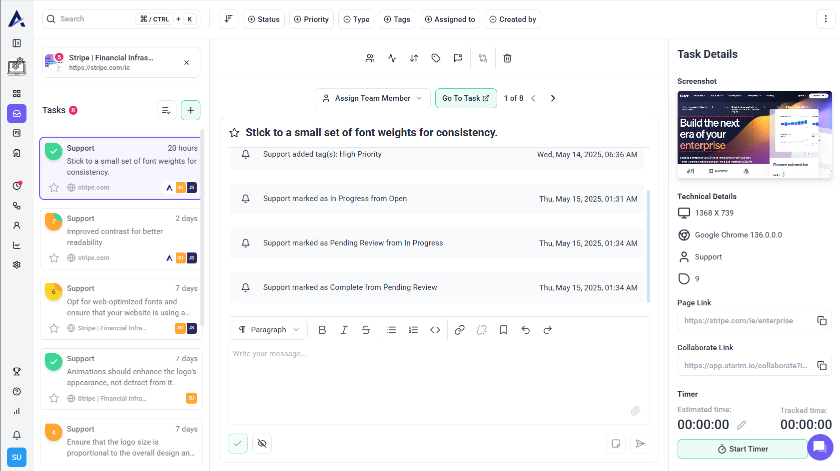 Recommendation: Use Atarim’s Analytics page to identify potential workload imbalances.