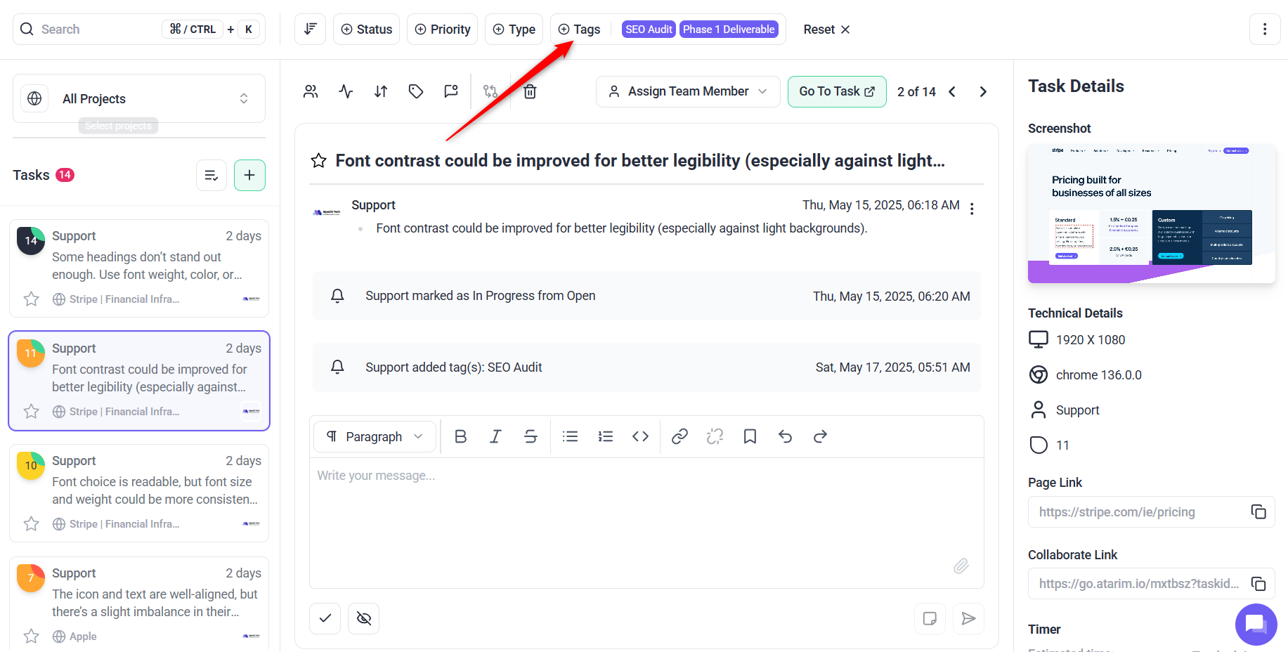 You can tailor tags to fit your team’s unique needs, whether you’re tracking feedback types, issue severity, or client requests.