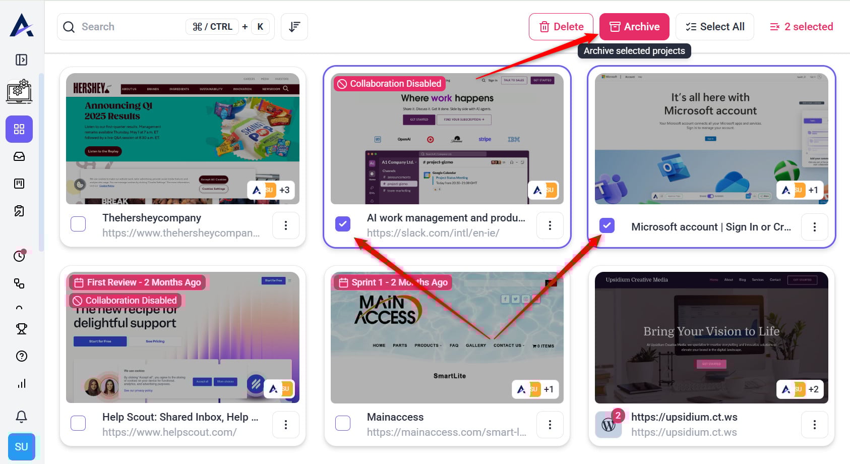 Keep your dashboard clutter-free and free up project slots by managing inactive projects.