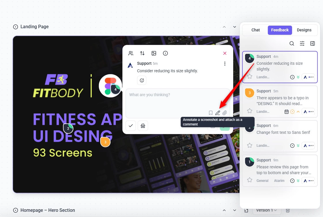 Atarim will automatically import the design so your team or clients can start leaving visual feedback.
